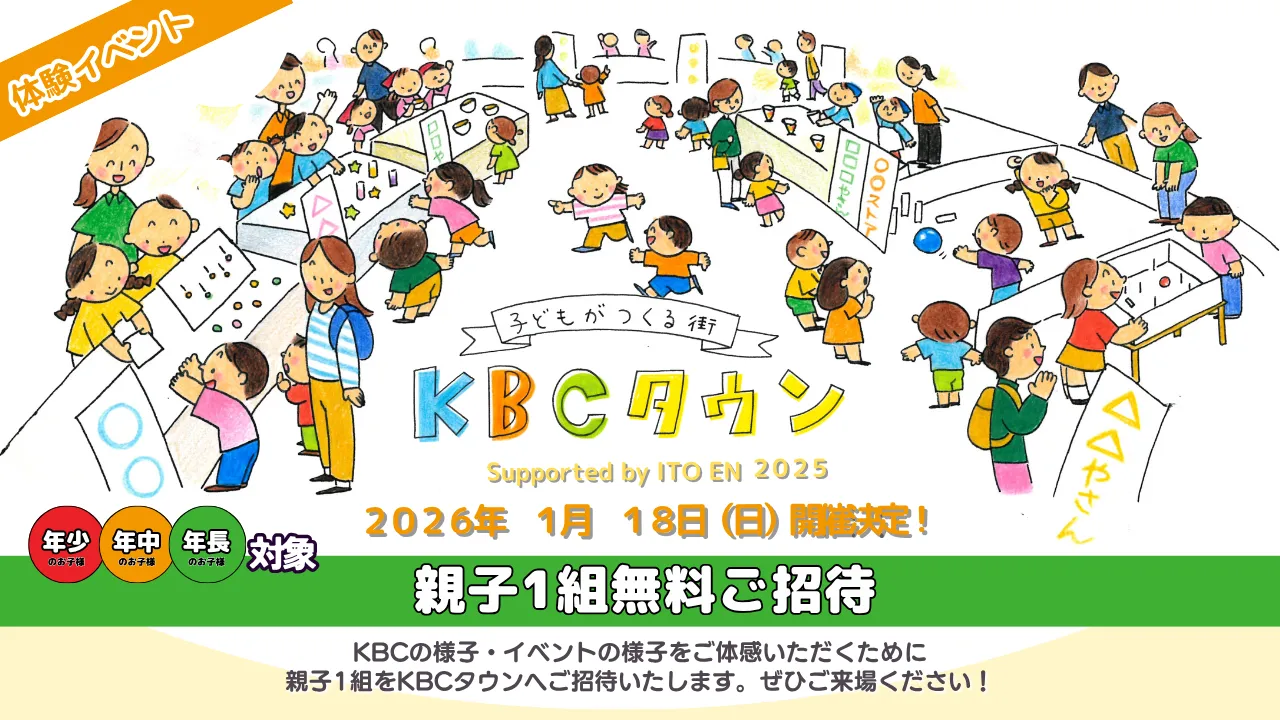 プログラムやキッズコーチや子どもたちが過ごす様子などKBCをご体感いただくために、年少・年中・年長のお子様とその保護者様をKBCタウン2025にご招待いたします。