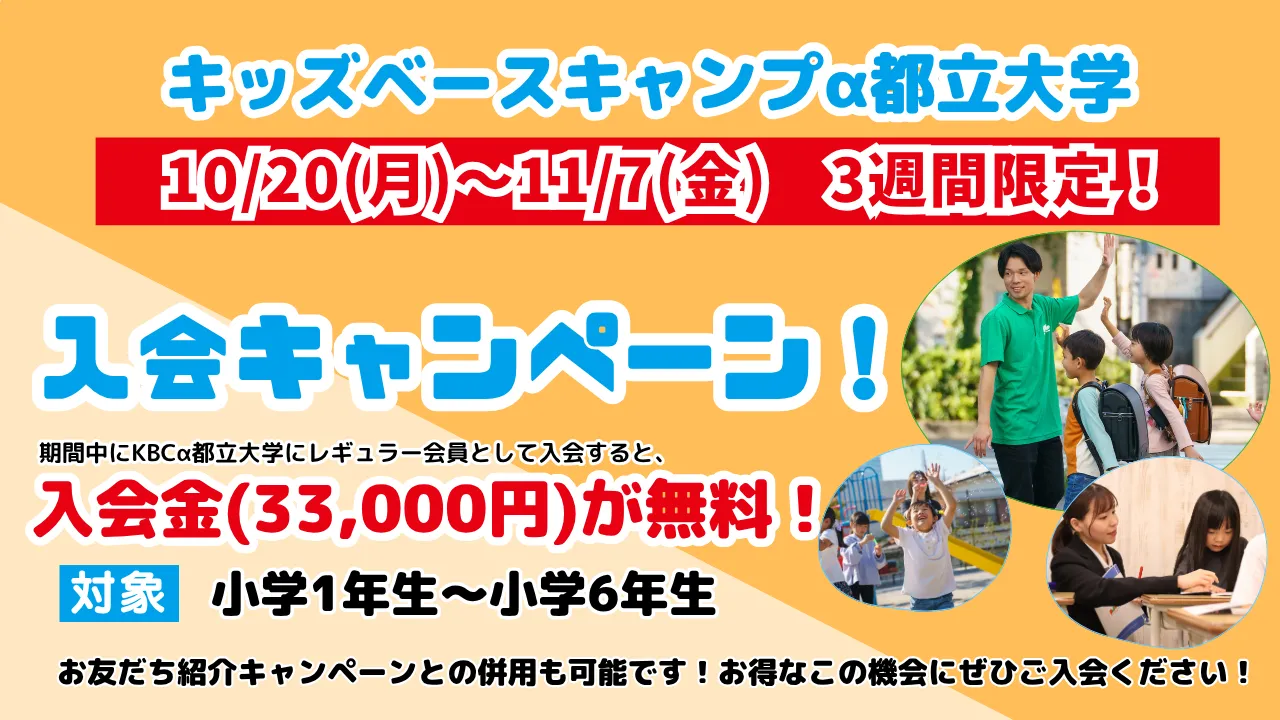 KBCα都立大学で、3週間限定入会金が無料となるキャンペーンを実施します。